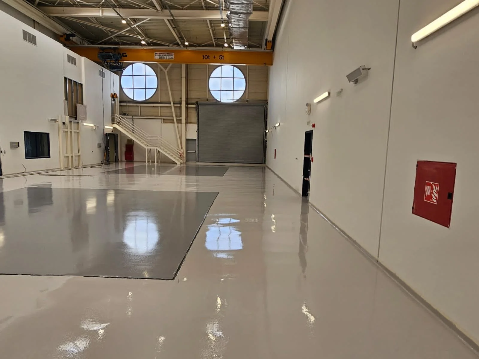 Στους χώρους των προσομοιωτών πτήσης, εφαρμόστηκε ειδικό εποξειδικό-πολυουρεθανικό σύστημα υψηλής ελαστικότητας και εξαιρετικής επιπεδότητας (±0,5 mm/m), ικανό να απορροφά τους κραδασμούς των μηχανημάτων προσομοίωσης.